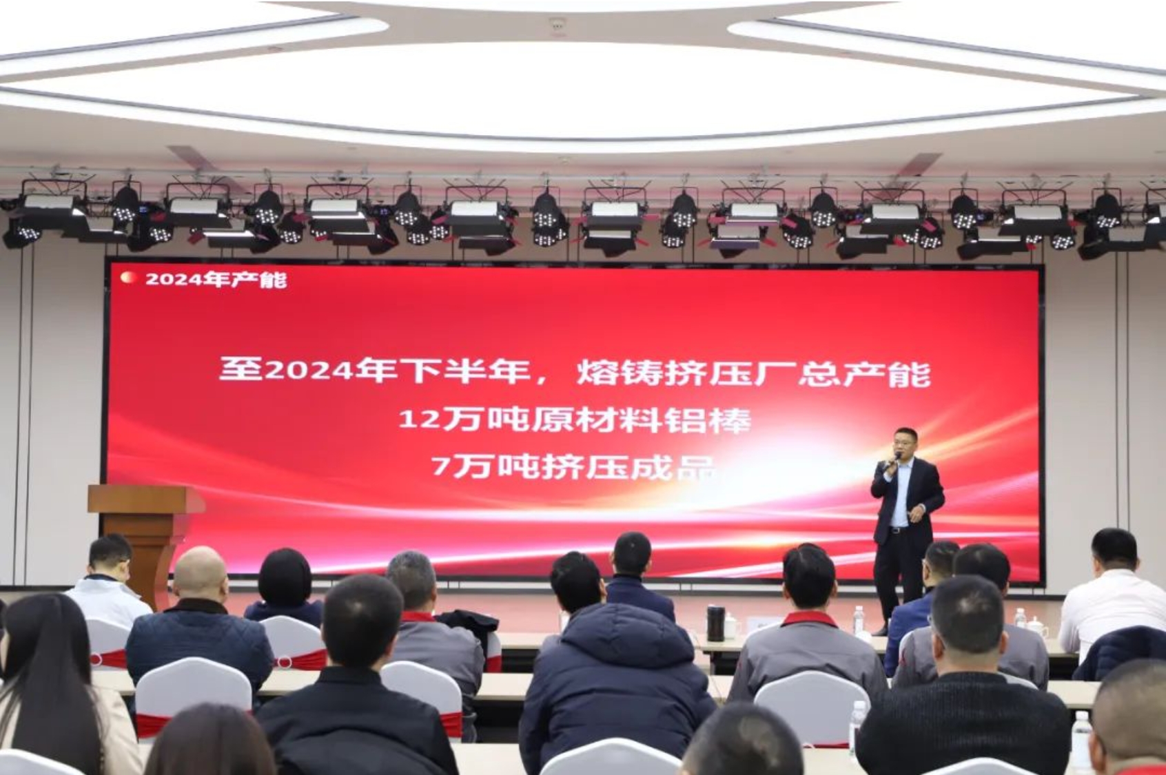 擠壓集成事業部及湖州公司總經理聞靈浩向與會人員介紹了熔鑄擠壓廠、湖州工廠的進展及2024年度擠壓集成事業部的工作部署與落地舉措。