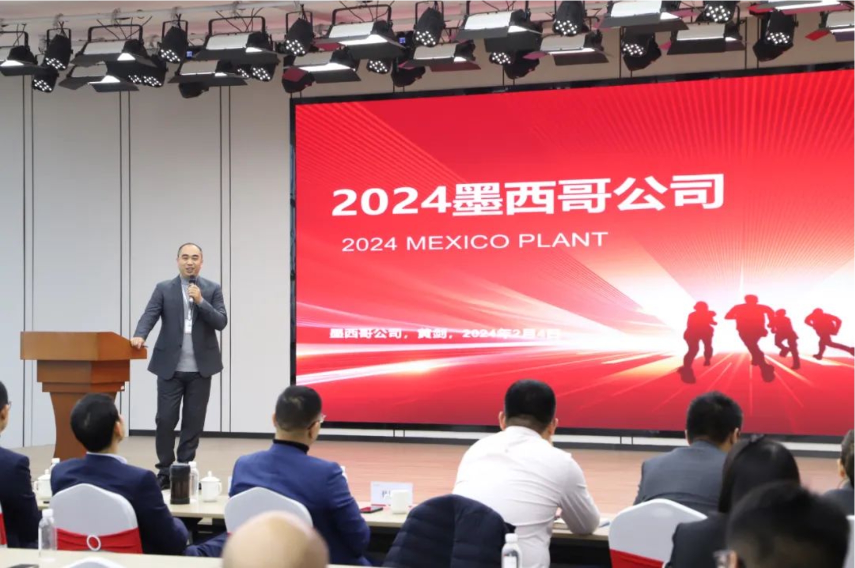 墨西哥公司總經理黃劍認真全面總結了2023年墨西哥公司的建設進度及未來三年規劃,他表示24年底實現部分投產、團隊組建基本完成;2025年將穩定管理級制造團隊、SOP項目穩步推進、嚴格控制品質及交付;2026年將針對穩定項目進行成本優化、針對擴產項目確保落地。