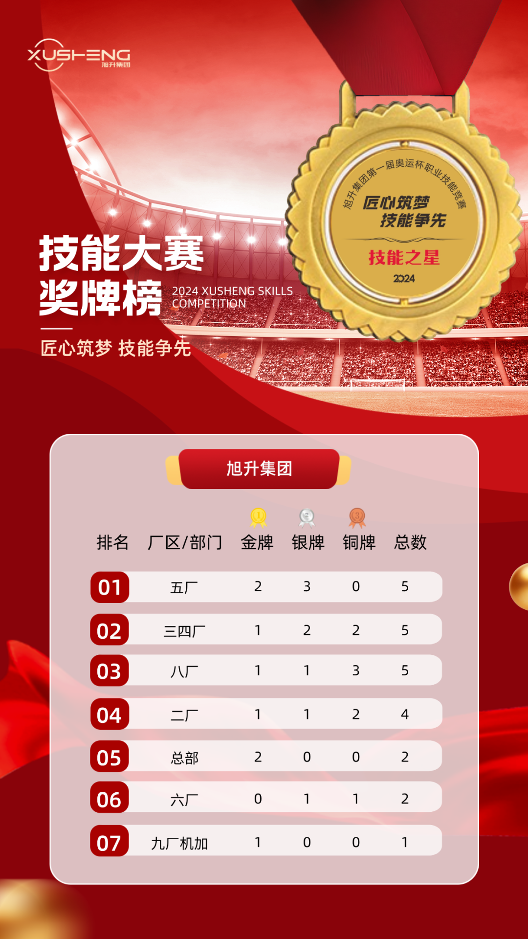 最后,對于獎牌榜排名第一的旭升五廠,授予了“技能標桿工廠”的流動榮譽稱號。(此榮譽將根據2025年獎牌榜情況進行移交)