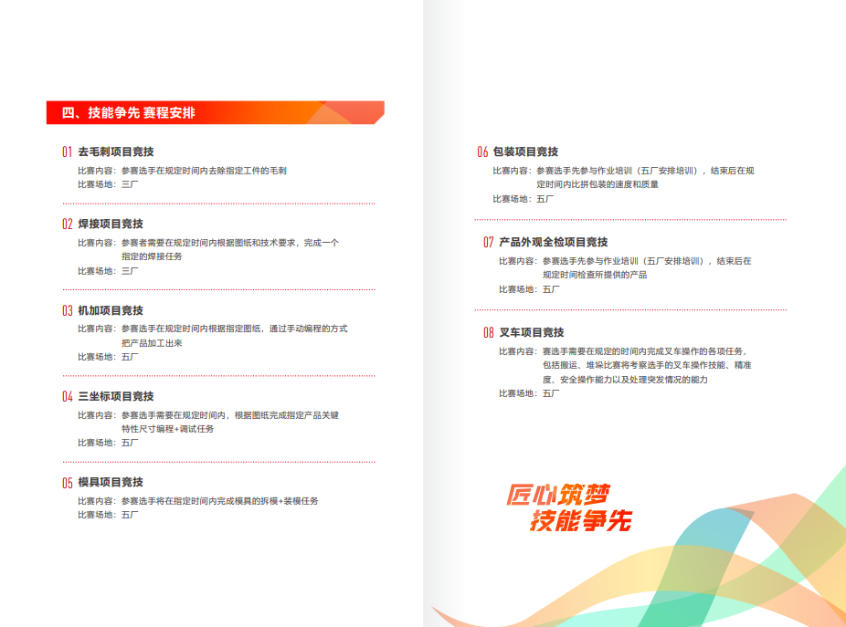本次大賽采用技能比武的形式,共設去毛刺、焊接、機加、三坐標編程、模具、產品外觀全檢、包裝、叉車等8大競技項目,為各單位搭建了相互交流、相互學習的平臺,提高技能人員學技術、強技能的熱情,進一步強化技能人才隊伍建設。