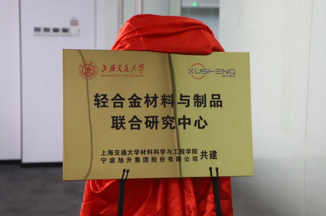簽約儀式在旭升集團總部舉行,雙方代表出席了儀式。旭升集團董事長徐旭東先生與上海交通大學特聘教授彭立明先生參與揭牌儀式,相關部門領導應邀參加。